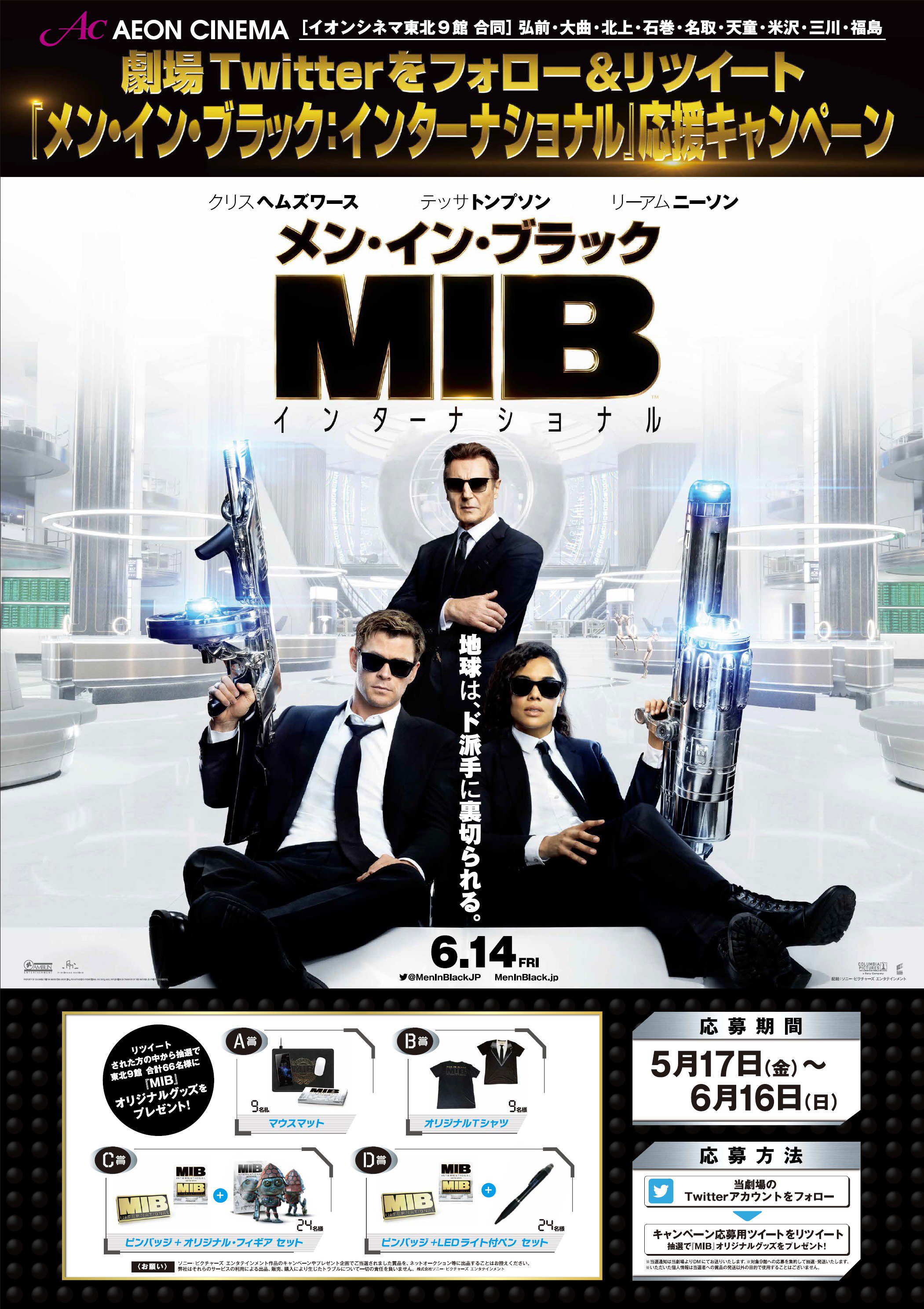 イオンシネマ東北9館合同 mibインターナショナル 応援キャンペーン あのmibが新チーム結成 地球の運命 イオンシネマ福島 twitter 2019 05 29 福島市 映画館 イオンシネマ福島