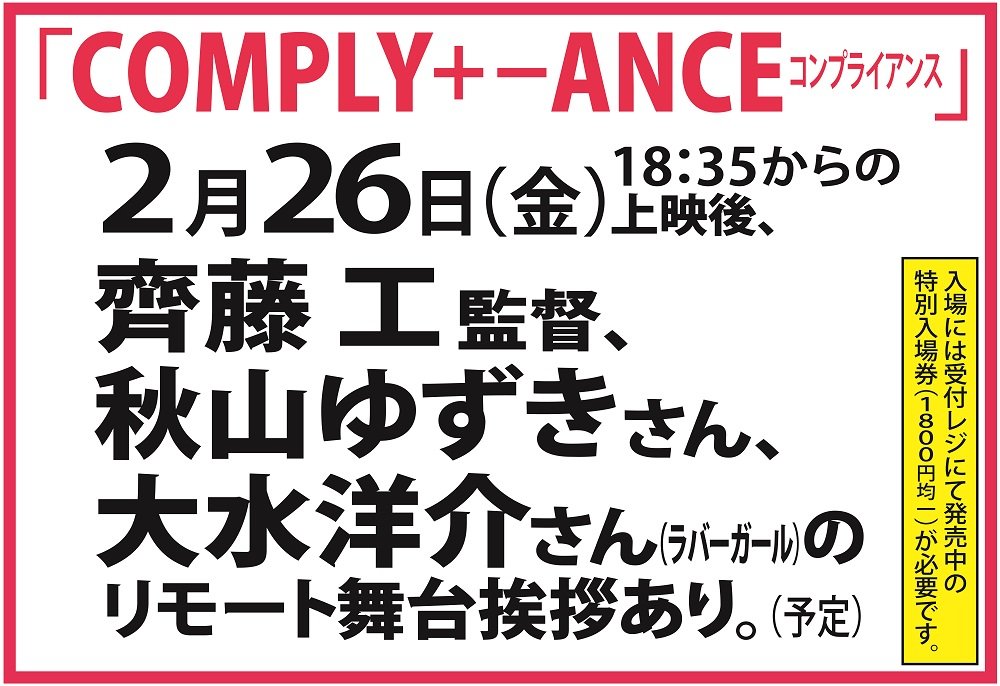 齊藤工総監督 comply 2月21日 金 より公開 サイン入り映画パンフレットプレゼント magazine brillia shortshorts theater online