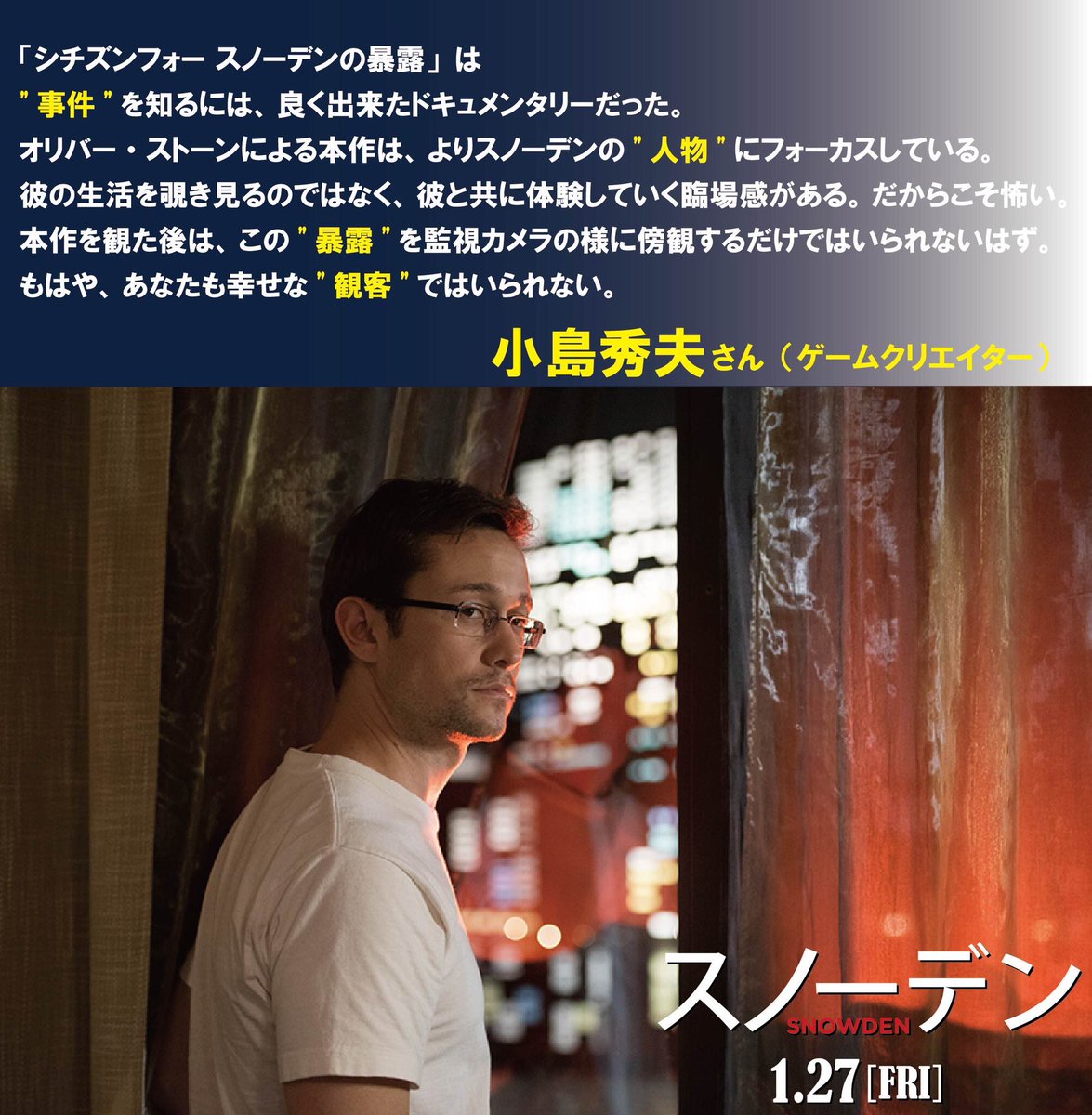 1月27日 金 公開最新作 スノーデン オリバー ストーン監督来日記者会見レポート 洋画専門チャンネル ザ シネマ