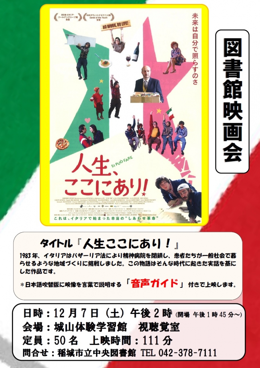 4月28日 土 伊映画 人生ここにあり 野洲図書館にて無料上映 鳰の会 ホームページ