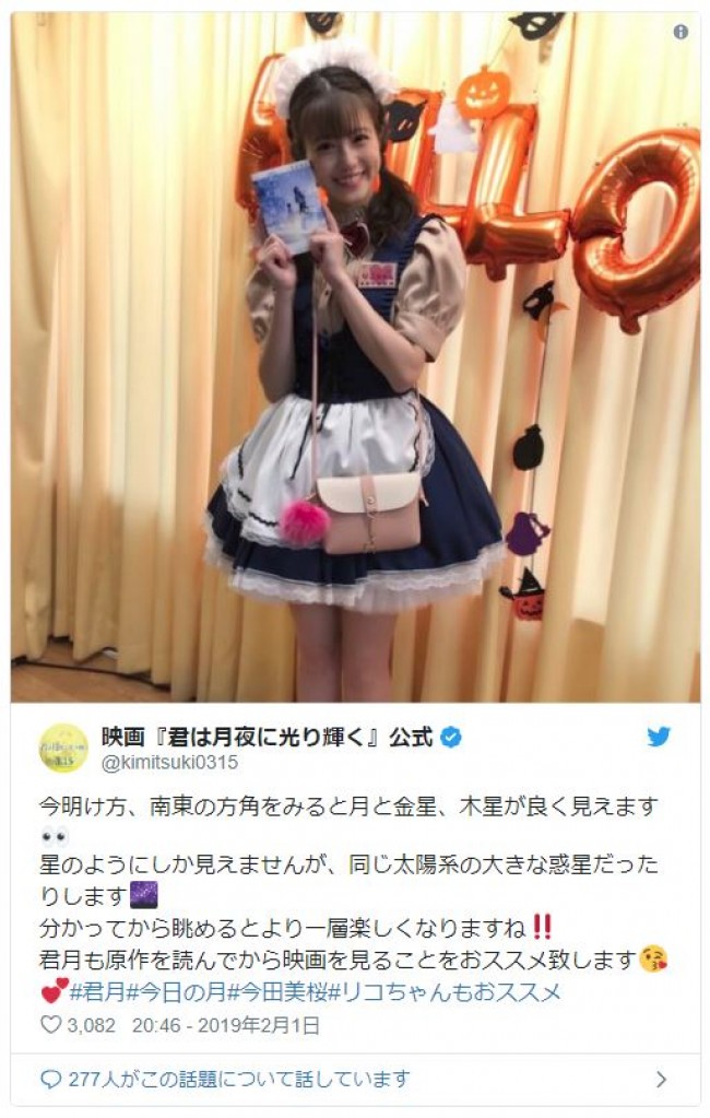 君月 公式 on twitter 小説から読むか 映画から観るか 是非 原作小説からお楽しみください 今日は平林リコ役 今田美桜さんの撮影です リコちゃんのメイド服 か かわいすぎる 君は月夜に光り輝く 3月15日公開 今田美桜 北村匠海 月川翔 佐野徹夜