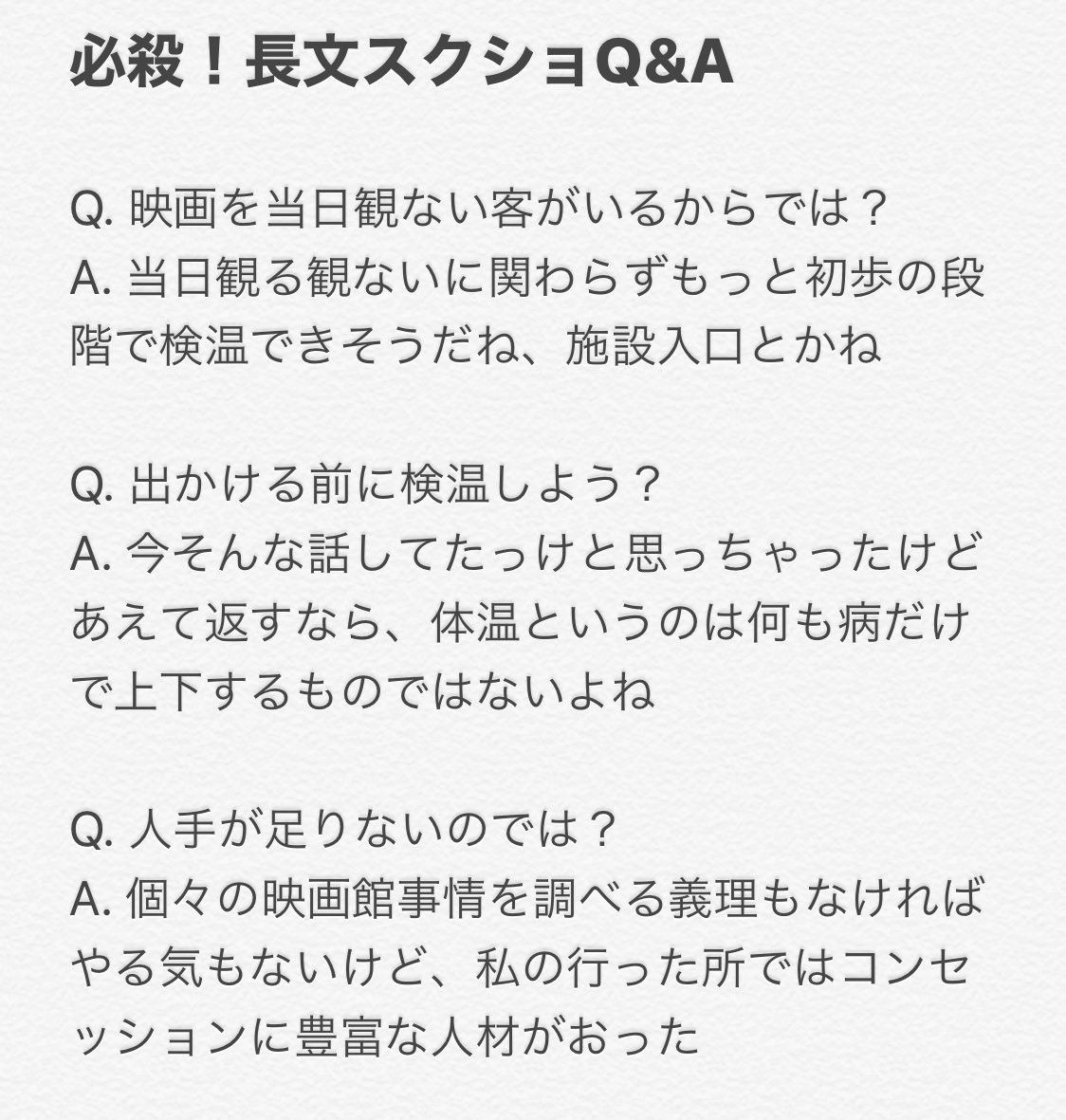 映画館のチケットもぎる所で検温してるけど ポップコーンとか買っちゃった後だと困るのでなんとかした方がいい 入り口で検温した方がいいのでは togetter