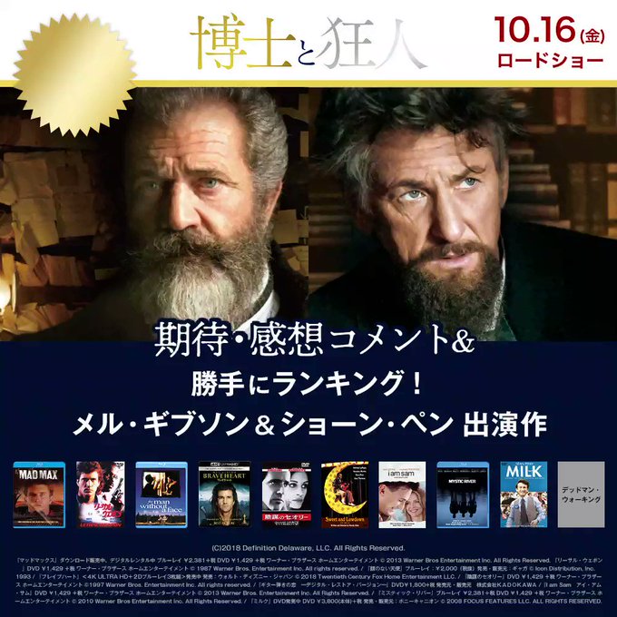 映画 博士と狂人 期待 感想コメント 勝手にランキング メル ギブソン ショーン ペン出演作 buzzes バジズ