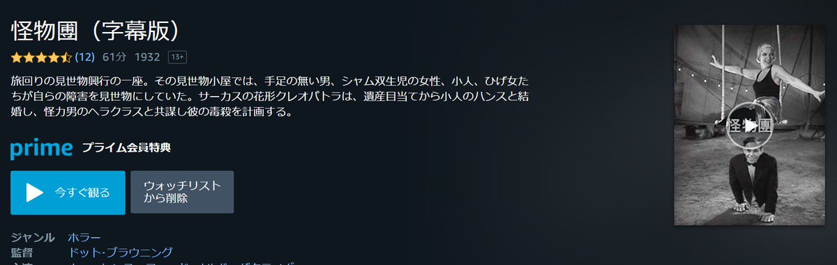 みやも 大阪府 على تويتر 1930年代サーカス物のフリークス映画 フリークス 1932 が日本公開当時のタイトルでamazonプライムビデオ配信されとる 怪物圑 字幕版 https t co v7r9lufby3 他にも1930 40年代の古い映画いろいろ出てるね https t co keyyf1nmkt