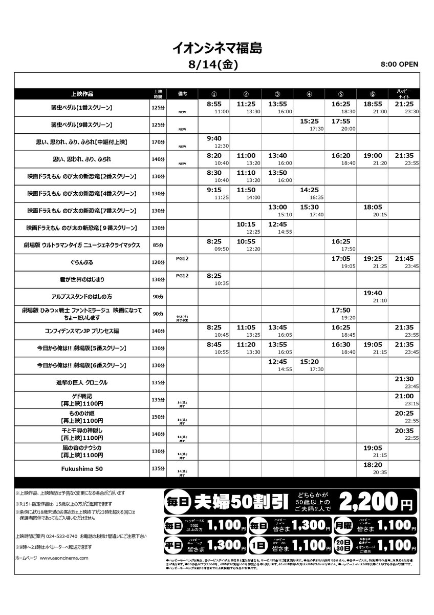 ポレポレシネマズいわき小名浜 on twitter 8 14 8 20 の上映スケジュール 更新 くれぐれも体調管理に留意してご来場下さいますようお願い申し上げます チケットは2日前より販売致します https t co c9lygsibli ポレポレシネマズ イオンモールいわき小名浜