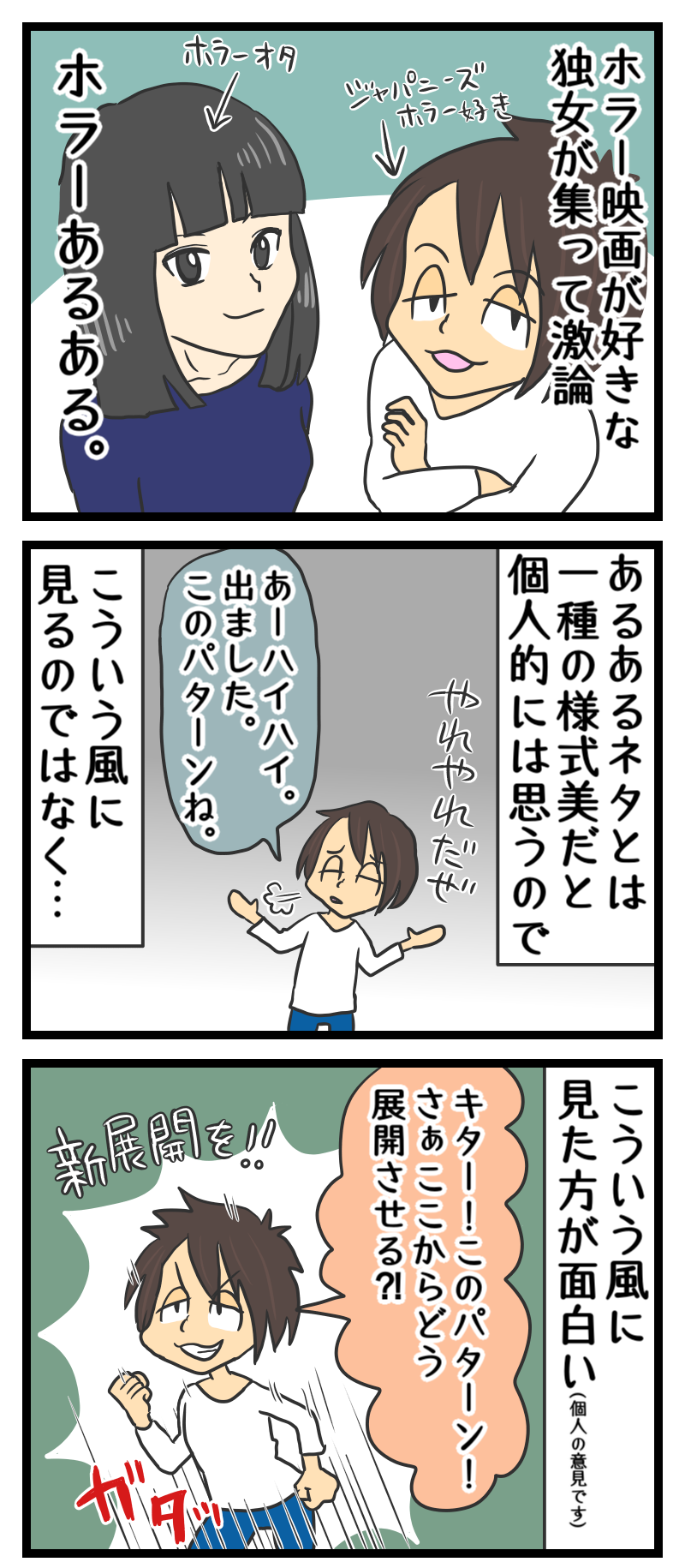 ホラー映画は大勢で見ると全然怖くない タコチキ 実録漫画や4コマなどを描いています note