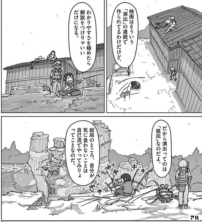 映画はそういう演出の連続で作られてるわけだけど わかりやすさを極めたら解説をつけりゃいいだけになる だから演出ってのは 抵抗 なのだよ 結局のところ 自分が気に食わないことは自己流てやってみりょってことなのだ 映像研には手を出すな 映像研 アル