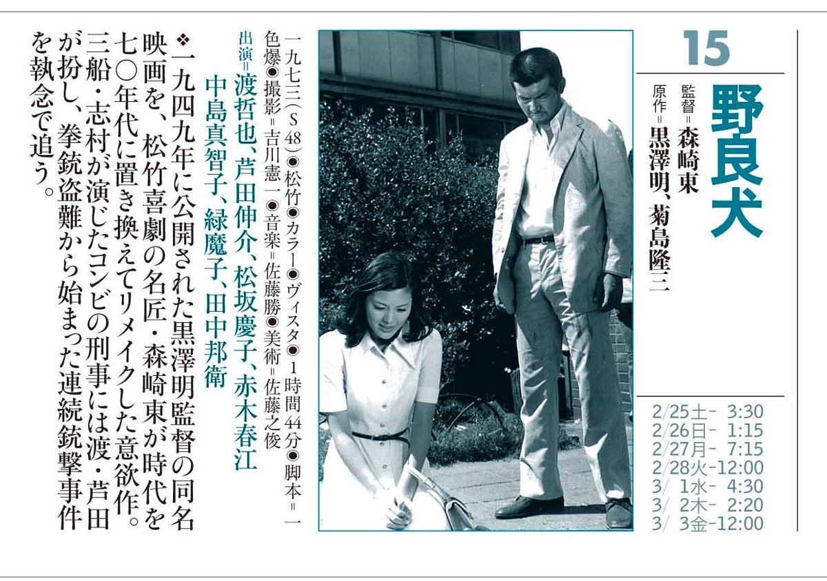 神保町シアターのひと twitterren あの時代の刑事 明日から最終週 森崎東監督 野良犬 黒澤明監督の名作 野良犬 を松竹喜劇の名手 森崎東がまさかのリメイク 渡哲也 芦田伸介の刑事コンビもなかなかです https t co bfhvchujk5