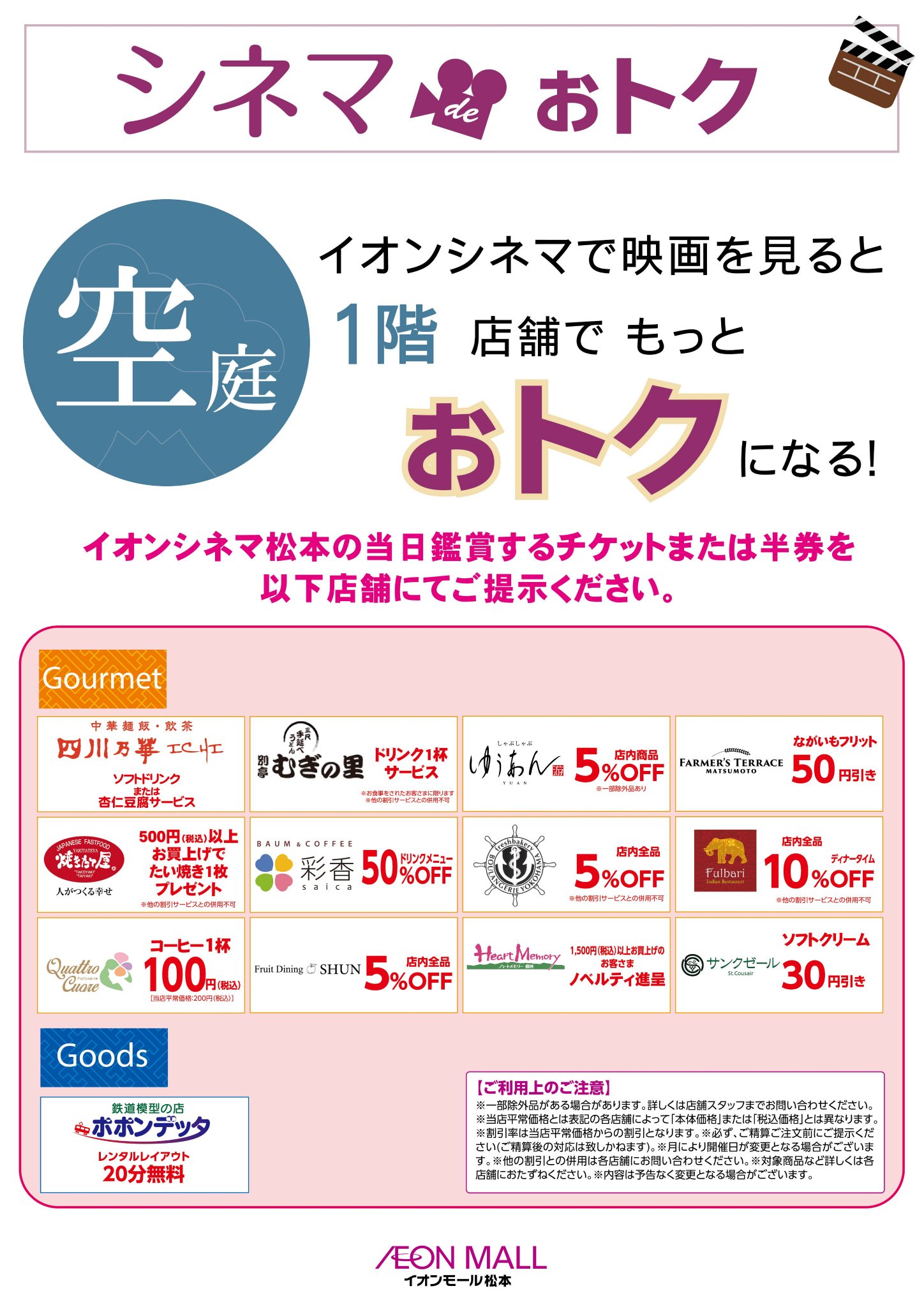 イオンシネマ松本 充実の割引制度が魅力な映画館 くーる長野 隠れた見所 おいしい食事
