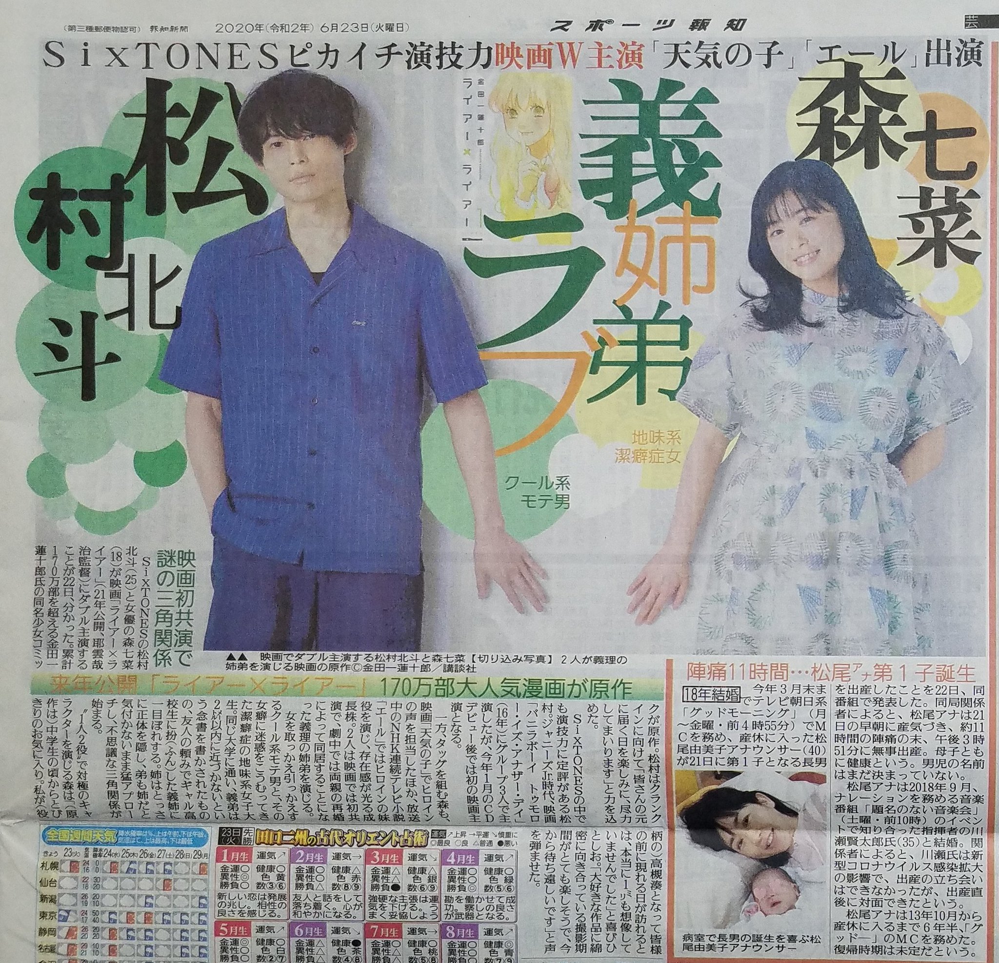 じゅりあ twitterren 来年公開予定 映画 ライアー ライアー sixtones松村北斗 森七菜 w主演 監督 耶雲哉治 原作 金田一蓮十郎 拾い画すみません