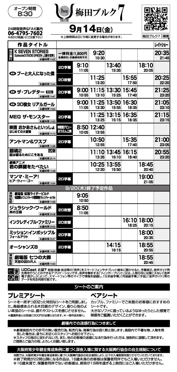 梅田ブルク7のアクセス 上映時間 映画館情報 映画の時間