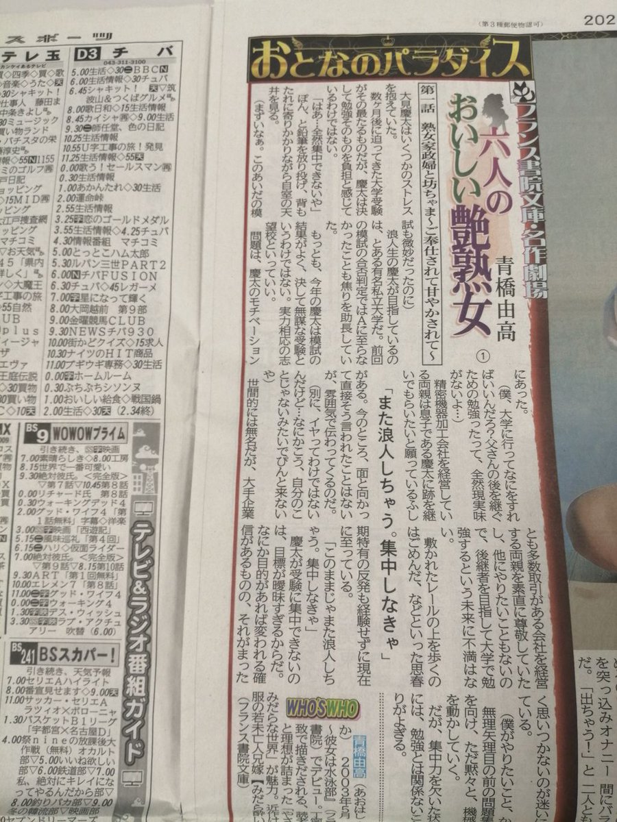 フランス書院文庫編集部 on twitter 3月7日 金 からデイリースポーツで 青橋由高 六人のおいしい艶熟女 の連載がスタート フランス書院文庫を一挙掲載するデイリーさんの 名作劇場 今回は青橋由高先生が登場 掲載は数ヶ月にわたる予定です チェックし