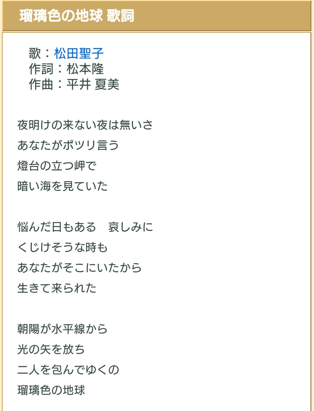 松田聖子 瑠璃色の地球