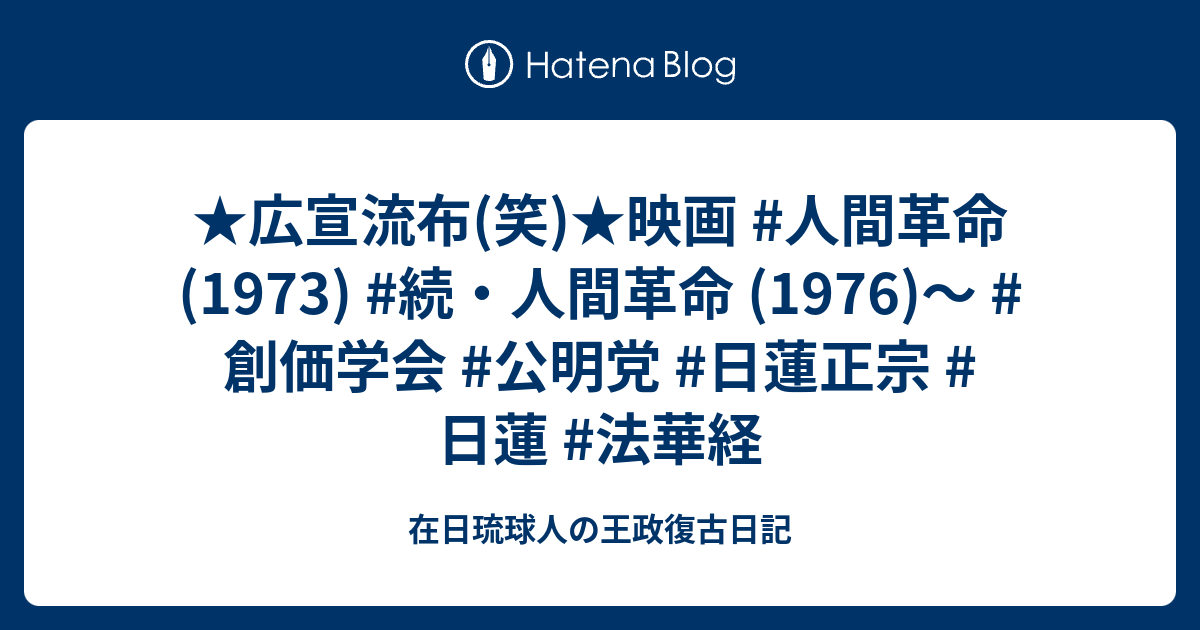 広宣流布 笑 映画 人間革命 1973 続 人間革命 1976 創価学会 公明党 日蓮正宗 日蓮 法華経 在日琉球人の王政復古日記