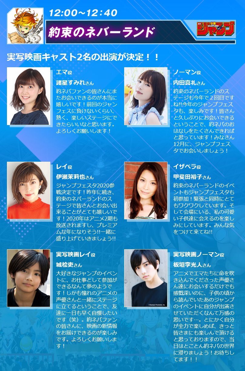 ট ইট র 約束のネバーランド 公式 このあとすぐ 12時より 約ネバ スーパーステージがスタート 豪華出演陣達による ここだけでしか見られない特別限定コンテンツも ぜひお越し下さい 出演 諸星すみれ 内田真礼 伊瀬茉莉也 甲斐田裕子 城桧吏 板垣