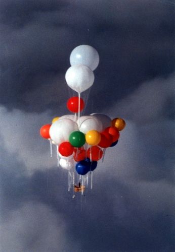 まるでカールおじさんの空飛ぶ家 バルーンアート 風船もって出かけましょう