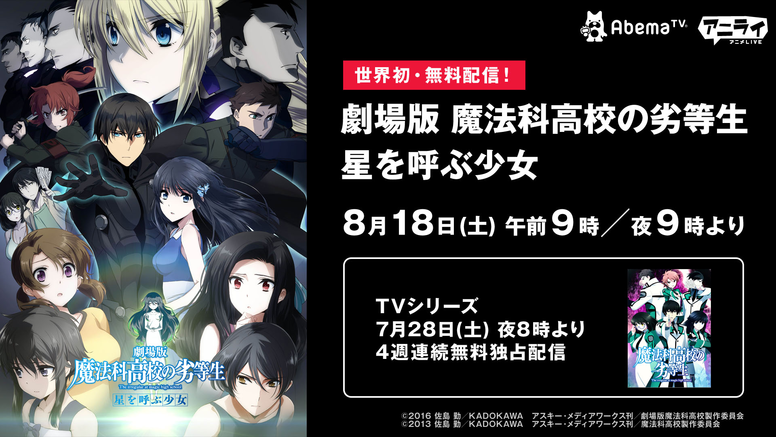 劇場版 魔法科高校の劣等生 星を呼ぶ少女 アニメ 無料で動画 見逃し配信を見るなら abemaビデオ