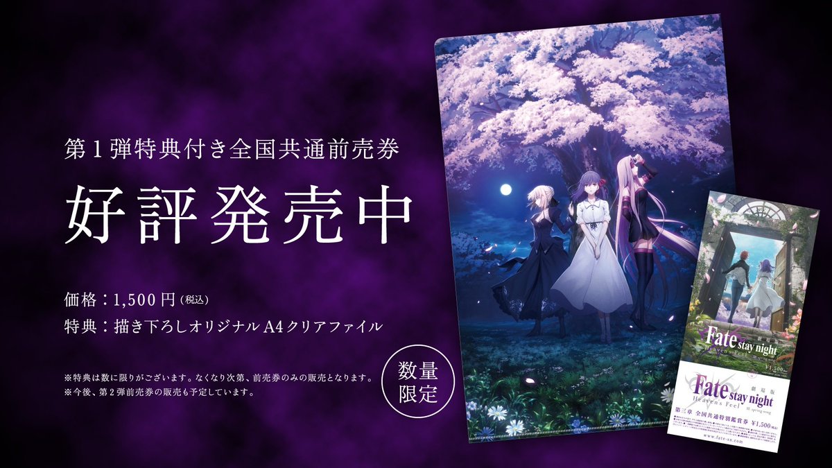 fate stay night on twitter 第3弾特典付き全国共通前売券 情報 9 16 土 より 第3弾特典付き全国共通前売券の発売が決定致しました 特典には第3弾のビジュアルを使用したクリアファイルとなります 詳細はこちら https t co spadtbc4bj fate sn anime