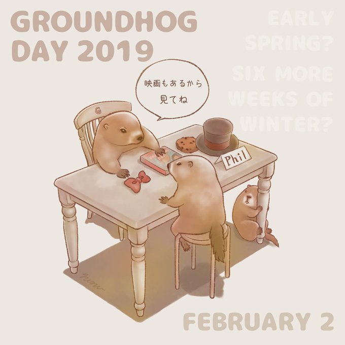 さのの on twitter グラウンドホッグデー groundhog day 北米で2月2日に行われる気象予想の行事 グラウンドホッグ ウッドチャック がこの日に冬眠から覚めて 自分の影を見る 晴れ だと冬は長引き 見ない 曇り だと長引かないという話 アメリカやカナダ